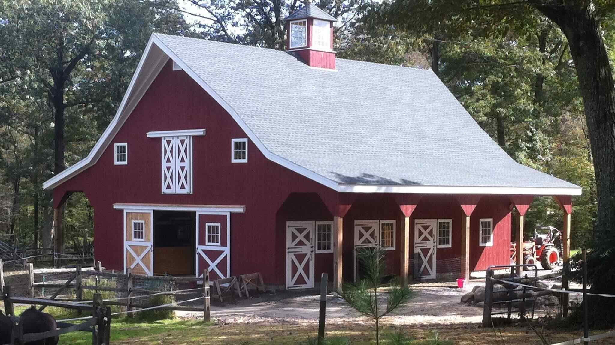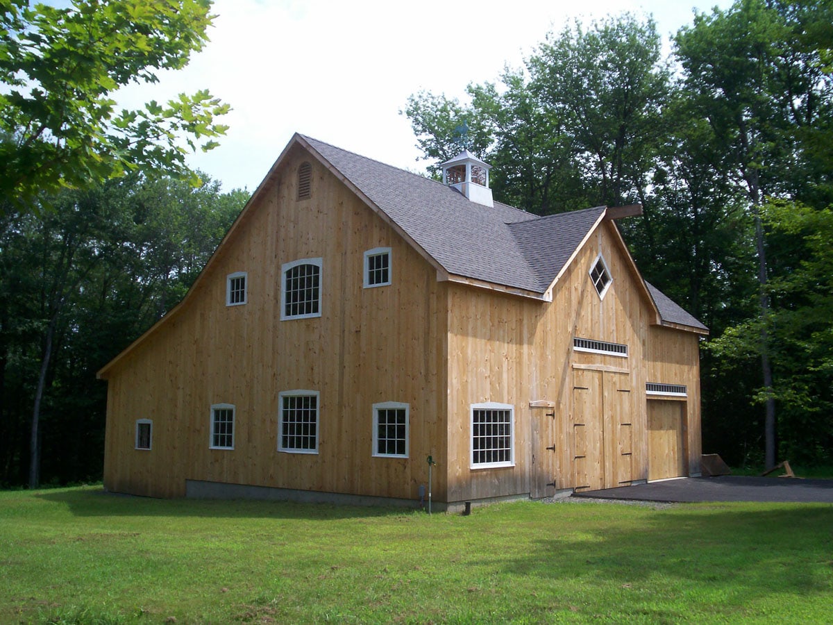 For a beautiful, strong and long-lasting home for your horses, a timber frame barn is your best choice. Our post and beam barn kits feature mortise and tenon cut Eastern Hemlock or Douglas Fir full dimension timbers, with 8×8 vertical posts and 8×10 to 8×14 horizontal beams. This heavy timber construction is practical, elegant and easy to maintain.