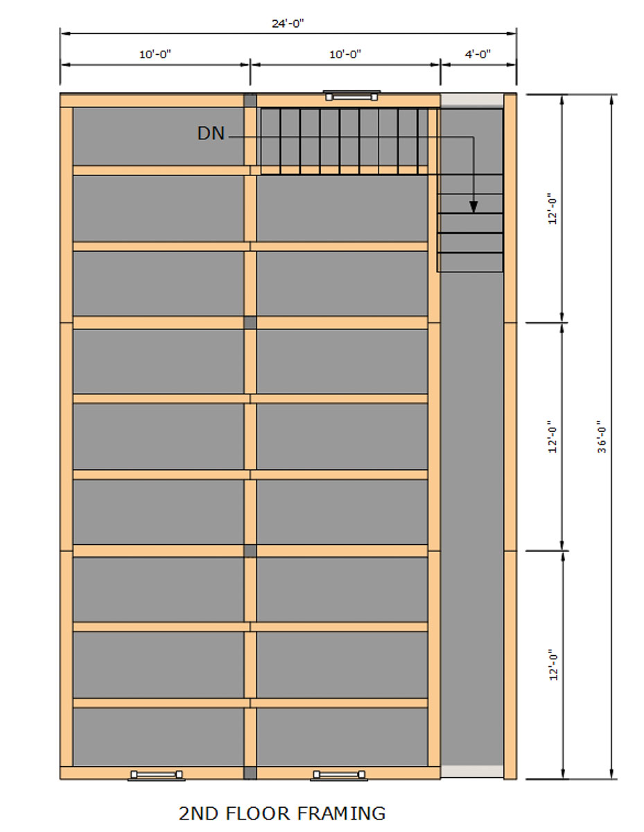• Band Joists / typically 8×8 or 8×10, equally spaced depending on spans