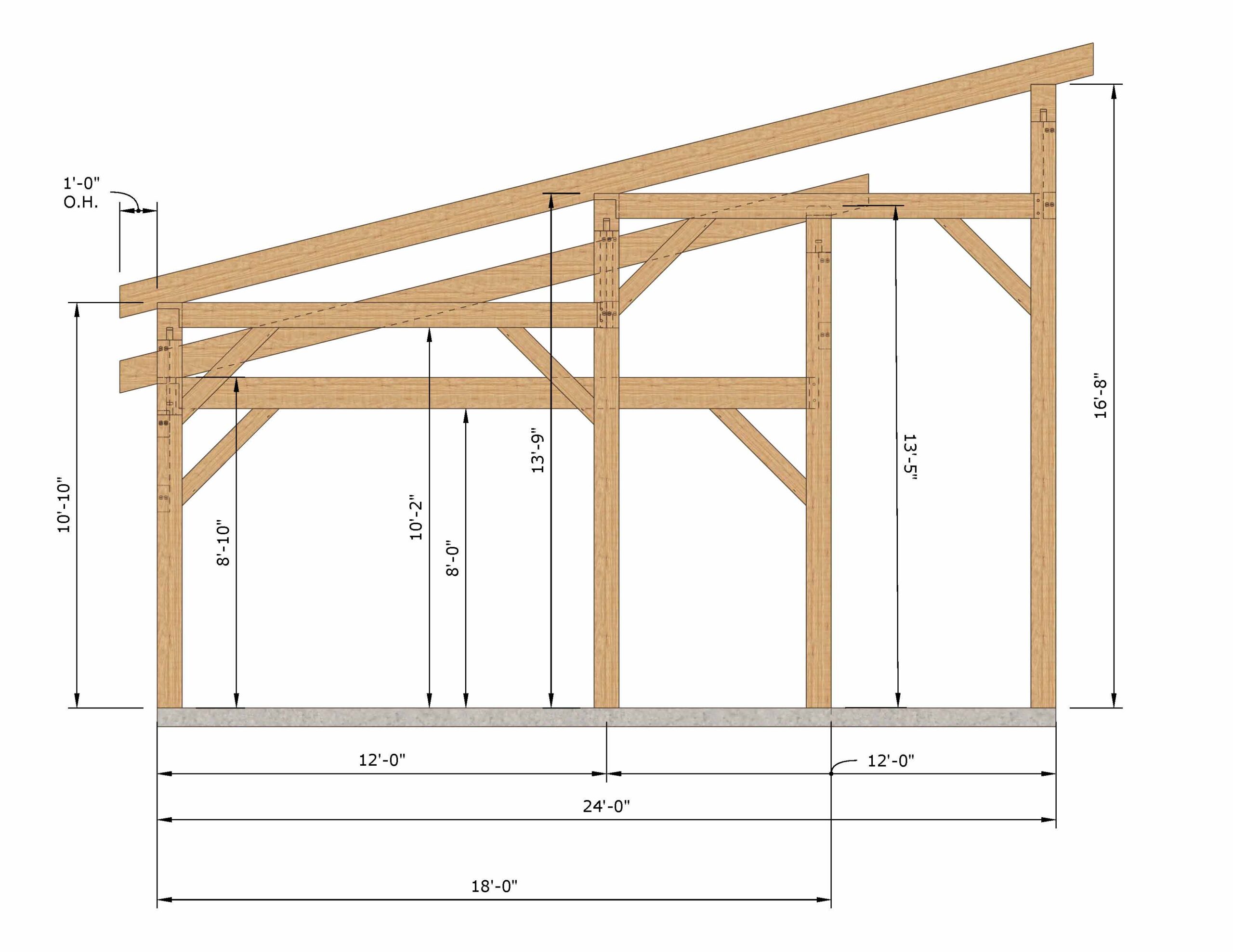 - Tie Beams / typically 6×8, 8×8, 8×10 depending on span
