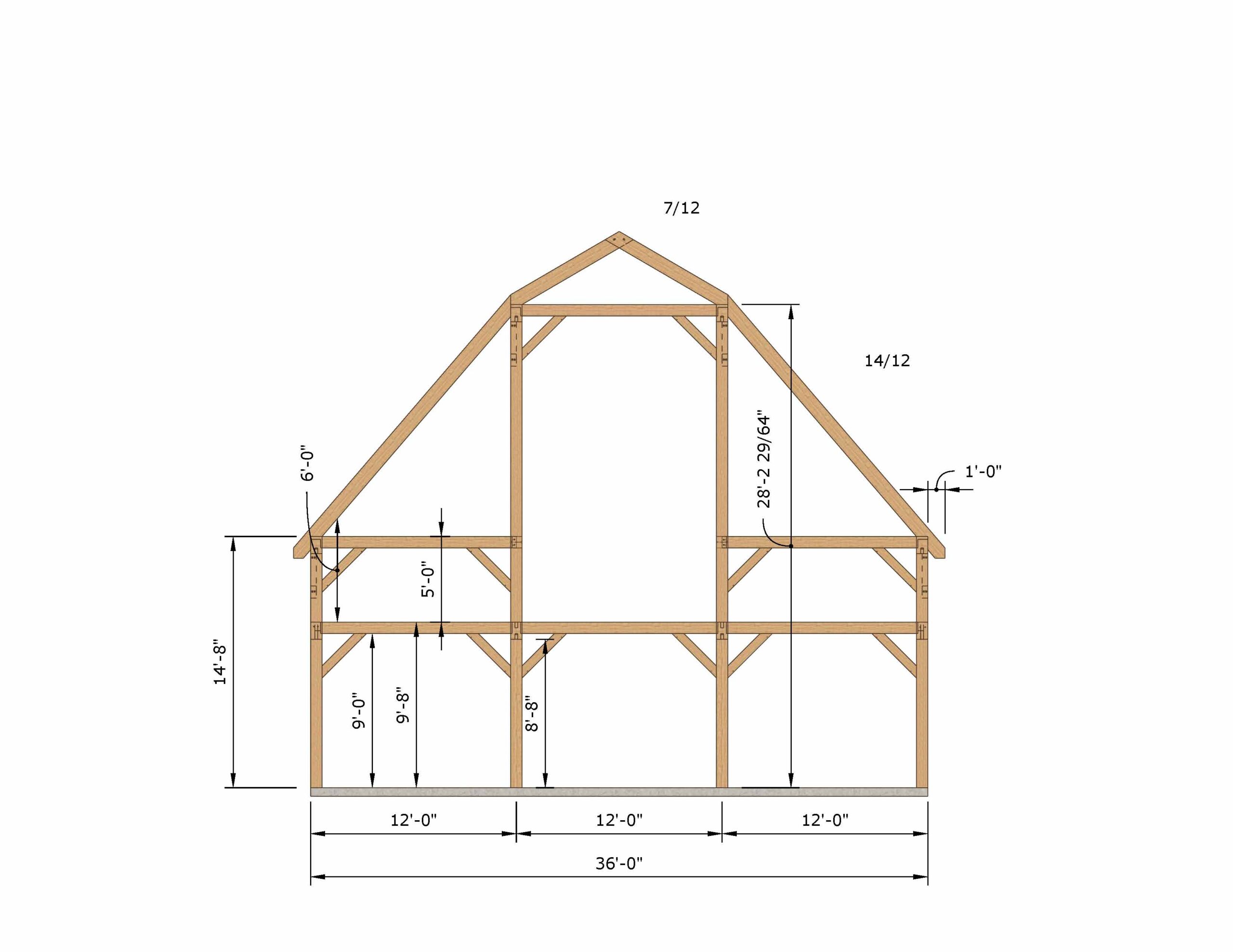 - Tie Beams / typically 6×8, 8×8, 8×10 depending on span