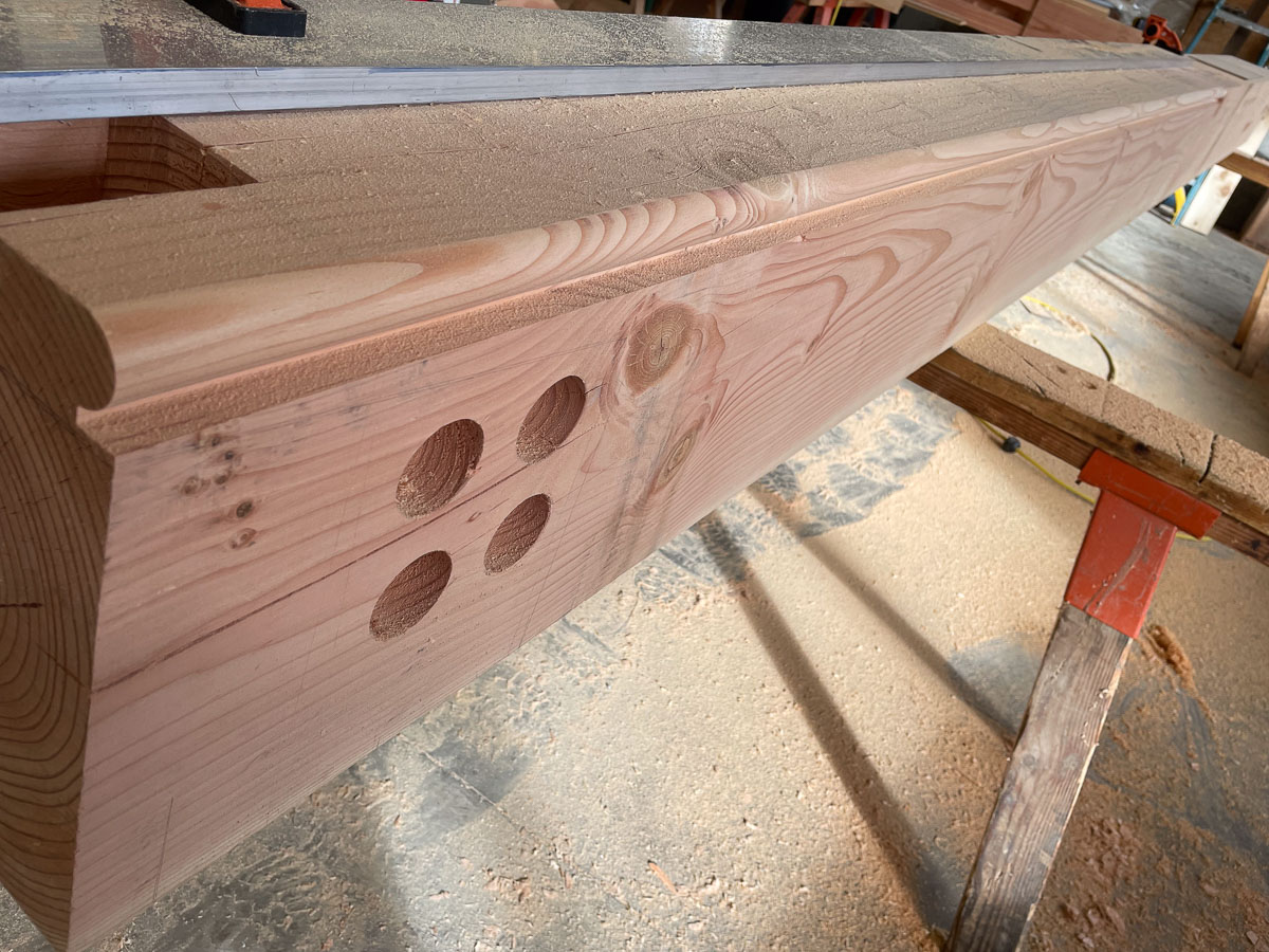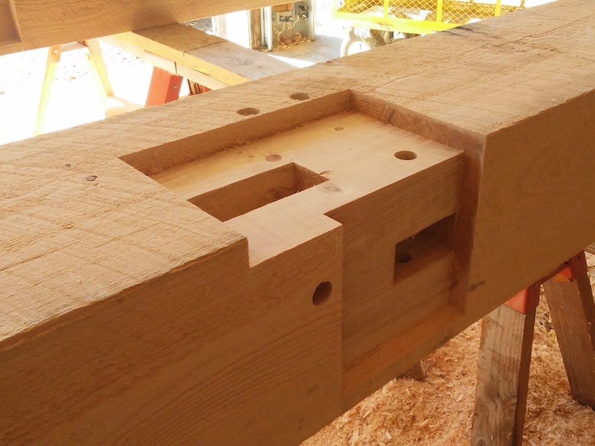 - Traditional wood joinery with hardwood pegging / no visible metal fasteners